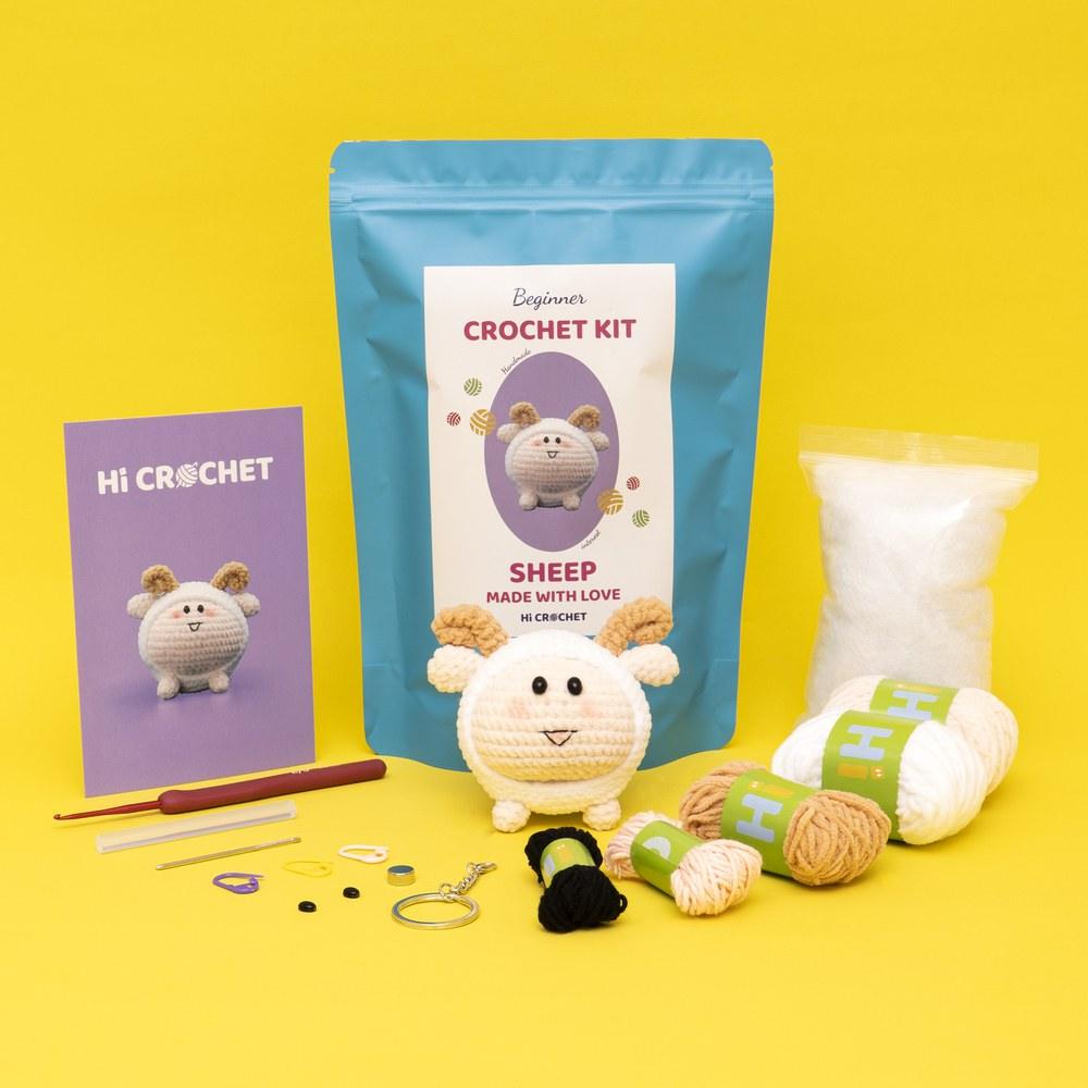 Häkelset mit 12 chinesischen Tierkreiszeichen-Schafen und Schlüsselanhänger