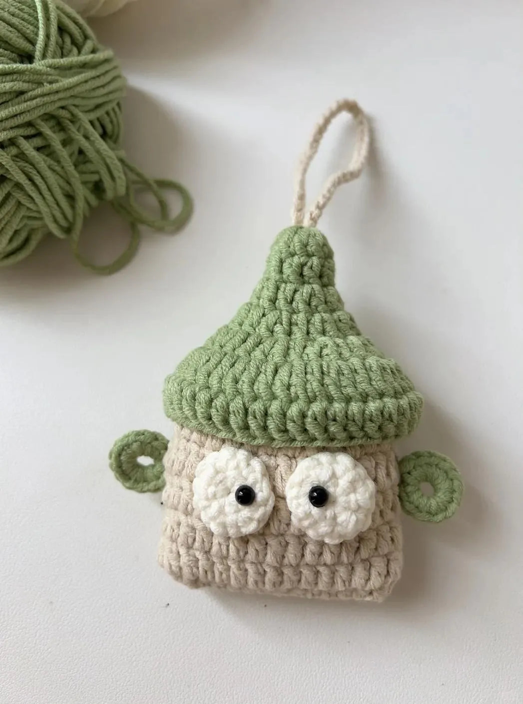 Diese Häkelanleitung für eine Kopfhörertasche in Flaschenform ist speziell für Liebhaber kleiner Gegenstände gedacht! 🎧💚 Das bezaubernde Design in Form eines Flaschenverschlusses und die Farbpalette in Vintage-Grün und Beige strahlen Wärme und Charme aus. Die verspielten Ohren an den Seiten und die großen, ausdrucksstarken Augen machen die Tasche noch niedlicher! ✨