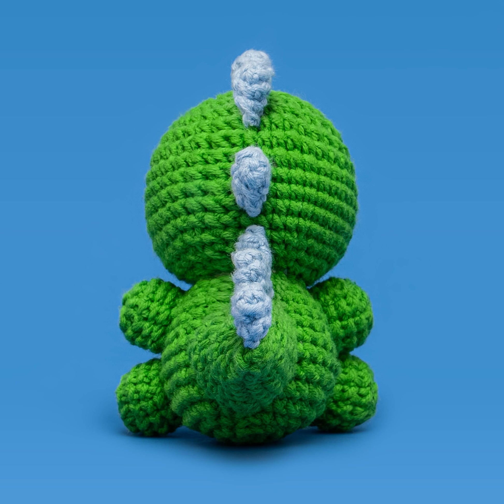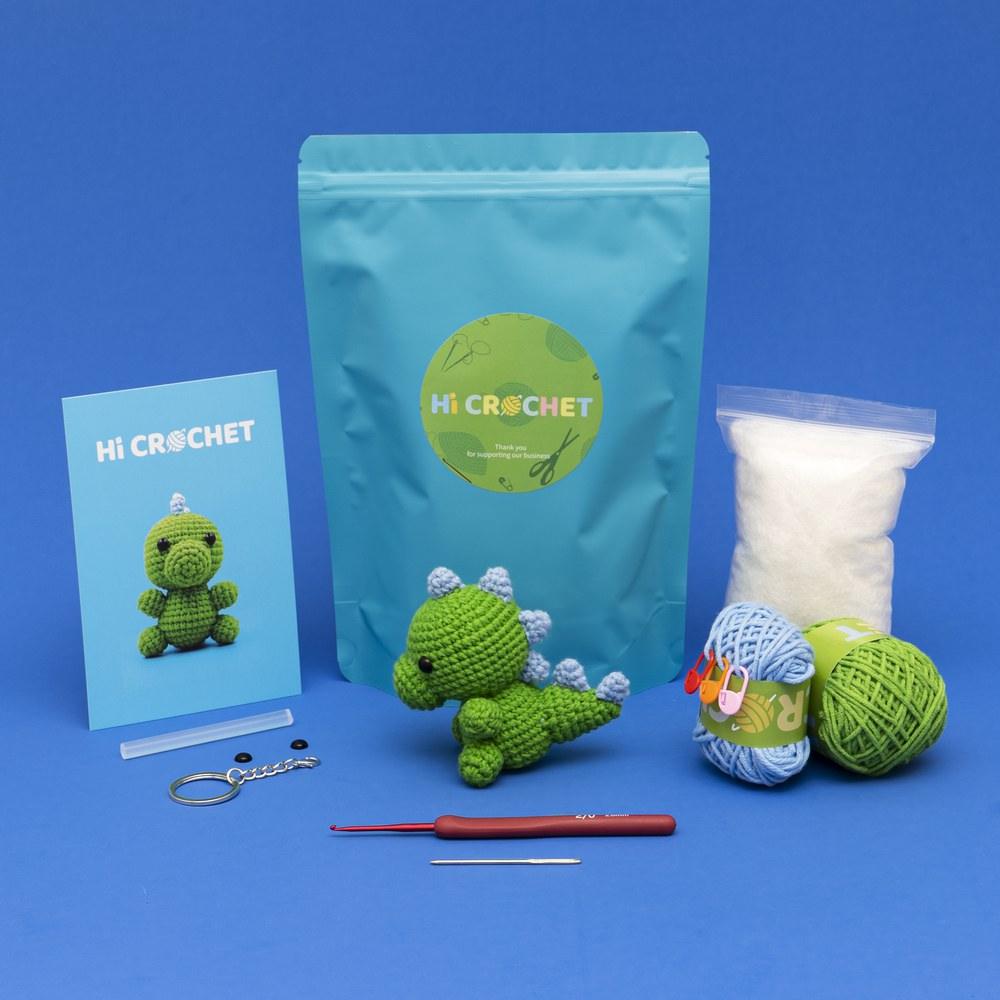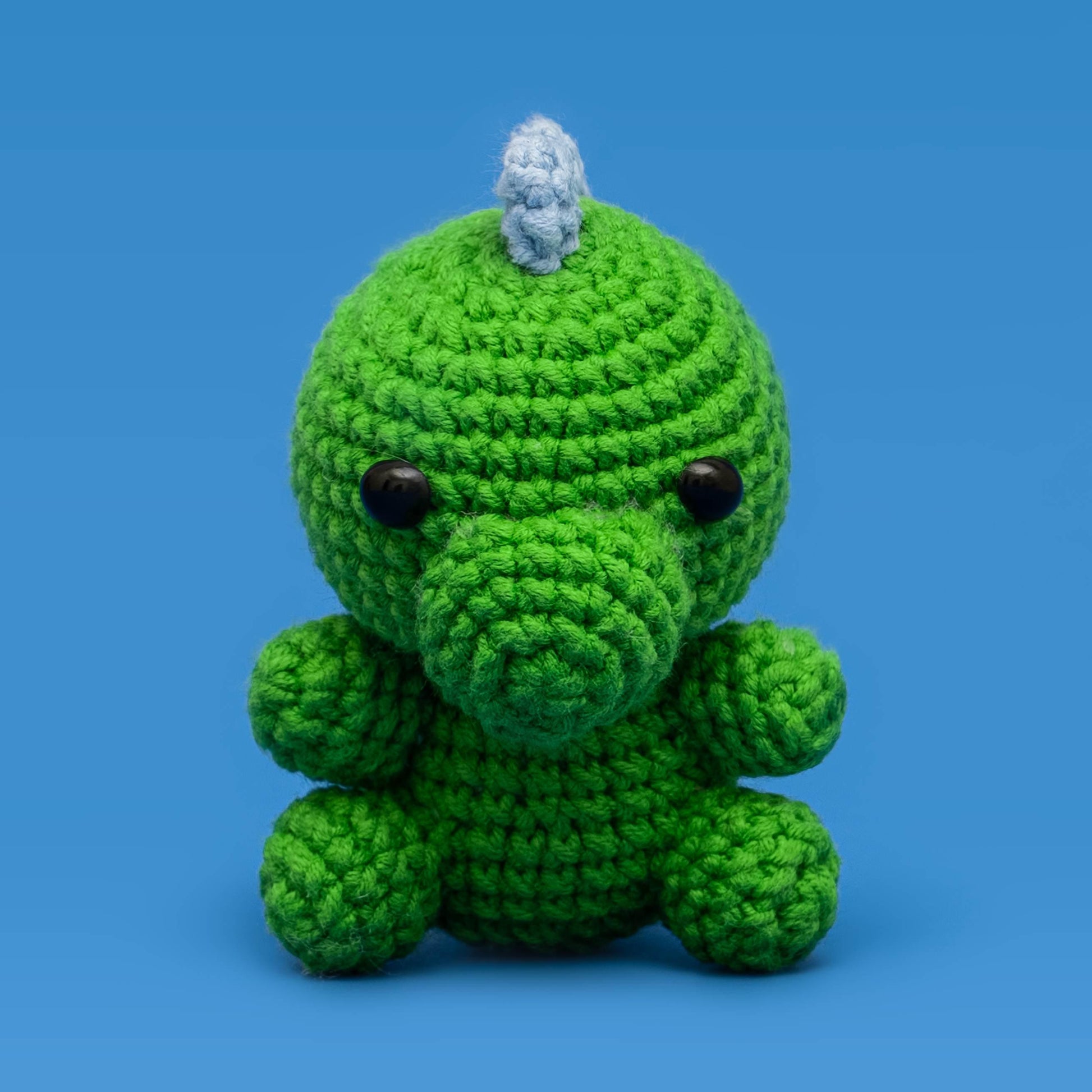 Der smaragdgrüne Babydinosaurier ist aus Garn gehäkelt, bei dem die Maschen gut zu erkennen sind. Hicrochet ist mit allen Werkzeugen ausgestattet, die Sie zum Häkeln des Dinosauriers benötigen, sowie einer leicht verständlichen Videoanleitung. Kommen Sie und fordern Sie sich mit handgemachter Kunst heraus und fügen Sie Ihrer konzentrierten Entspannung eine neue Aktivität hinzu.