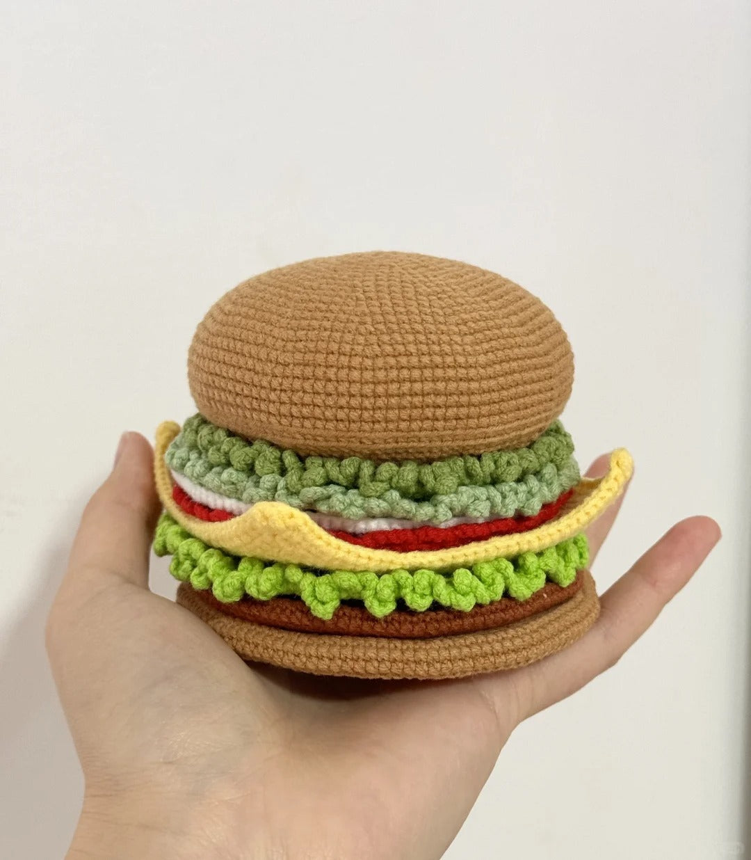 Diese kostenlose Häkelanleitung für einen Burger-Untersetzer ist eine lustige und originelle Möglichkeit, Ihre Wohnkultur aufzupeppen! 🍔🧶 Hergestellt aus Garn MWW-1 und einer 2,0-mm-Nadel, zeigt dieser Untersetzer einen lecker aussehenden Burger mit allen klassischen Schichten: einem goldenen Brötchen, frischem Salat, einem herzhaften Patty und einer Scheibe Käse. Perfekt für alle, die ihre Häkelprojekte gerne etwas ausgefallener gestalten! Diese Anleitung ist nicht nur niedlich, sondern auch praktisch und somit das perfekte Geschenk für Feinschmecker oder eine einzigartige Ergänzung für Ihre eigene Sammlung. Bringen Sie mit diesem kreativen Häkeldesign eine Prise Spaß auf Ihren Tisch! 🍔✨