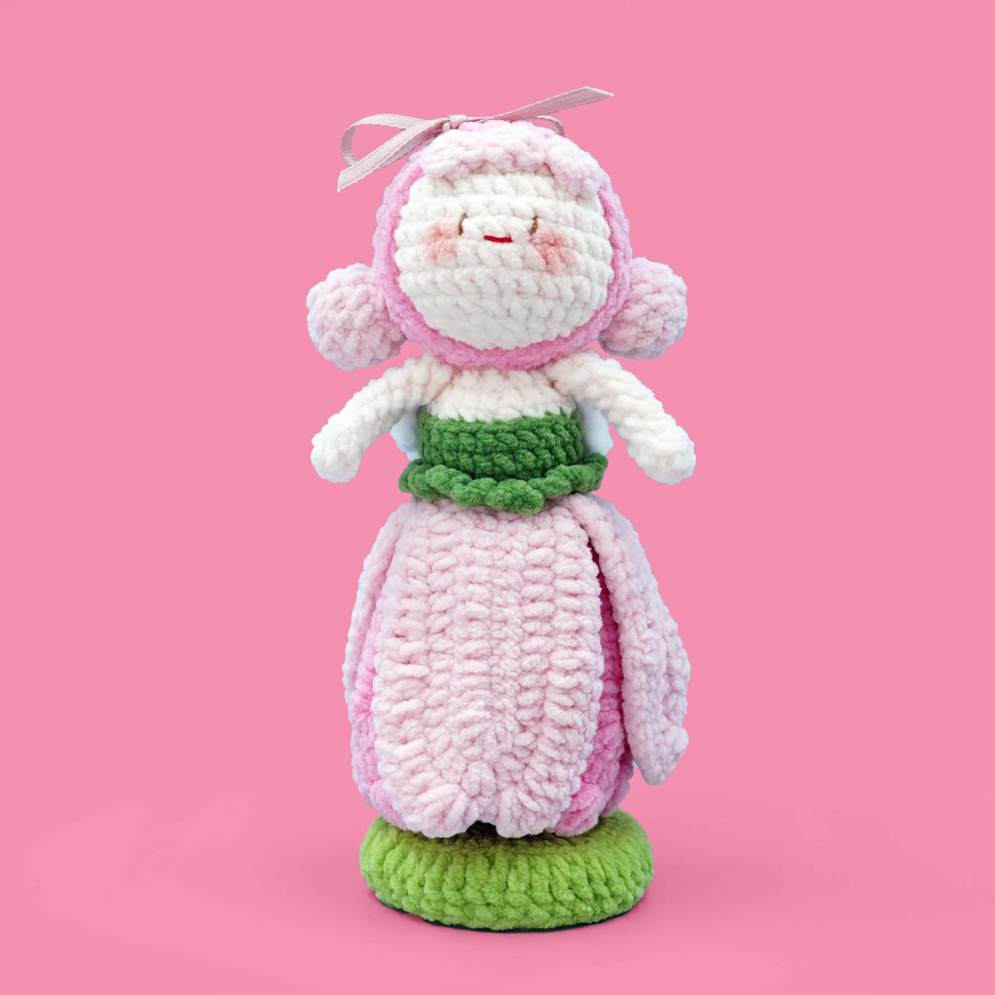 Häkel-, Strick- und Stoffset für Puppen mit Blumenmädchen in Rosa