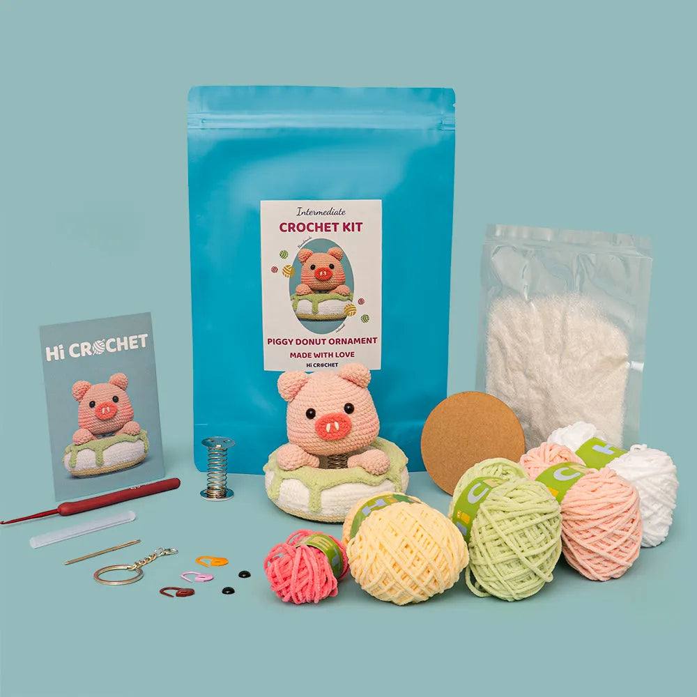 On Banana Island, the spirited 🐷 pigs are always brimming with creativity and joy. They love adorning their homes with handicrafts, adding color to island life. One day, a mysterious traveler brought a magical crochet kit filled with vibrant threads and sparkling embellishments ✨. The pigs eagerly grabbed the kit and embarked on a creative journey 🎨. With careful weaving, they crafted stunning pieces, including a pig with its lower half shaped like a delicious doughnut, playful yet adorable 🍩. This creative masterpiece quickly became the island's favorite, sought after by all as a cherished memento. Now, you too can join the pigs' creative adventures with this adorable crochet kit, crafting your unique pieces and leaving behind wonderful memories! 🌟