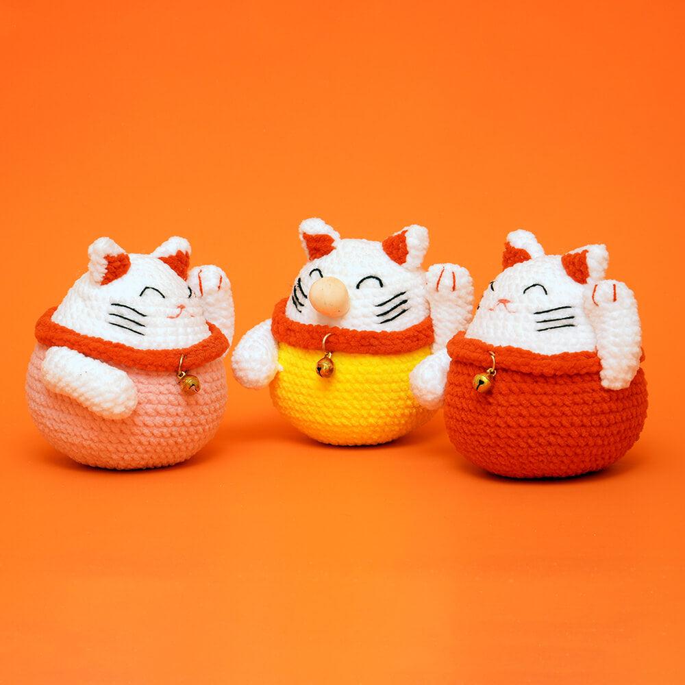 Magnetic Lucky Cat Crochet Kit-Red with keychain