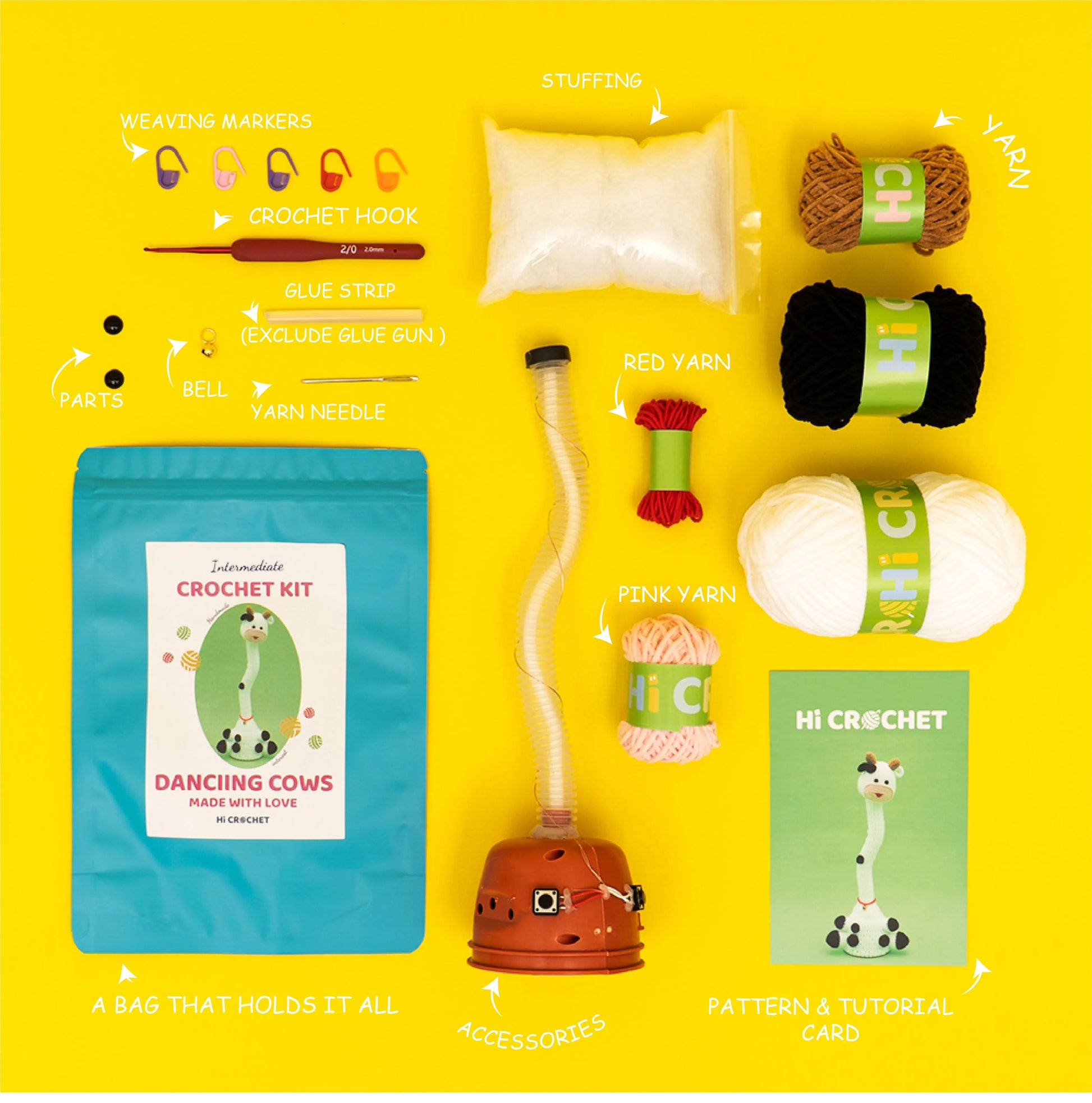 この奇跡的な瞬間を記念して、 Hicrochet は特別なかぎ針編みキットをデザインしました。これにより、誰もが歌って踊る牛を編むことができ、他の人が勇敢に夢を追いかけるよう刺激を受けることができます。🧶🌈