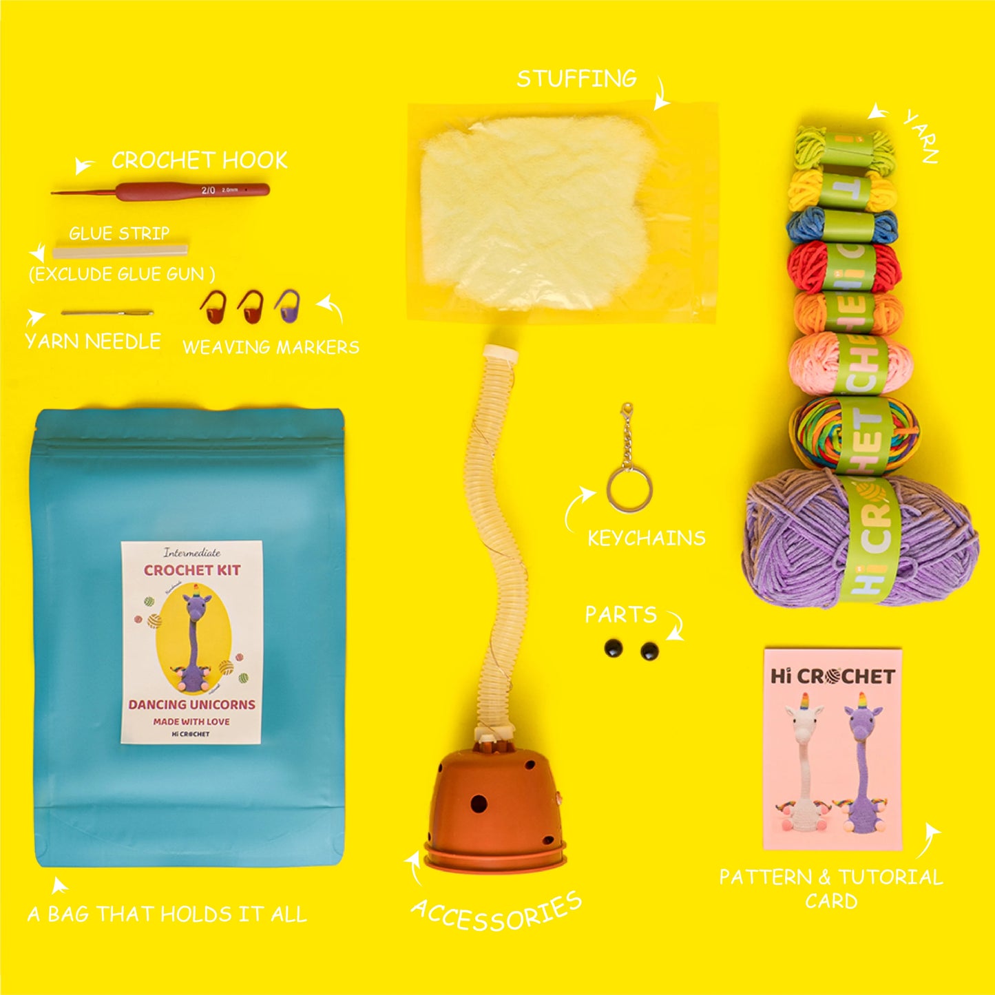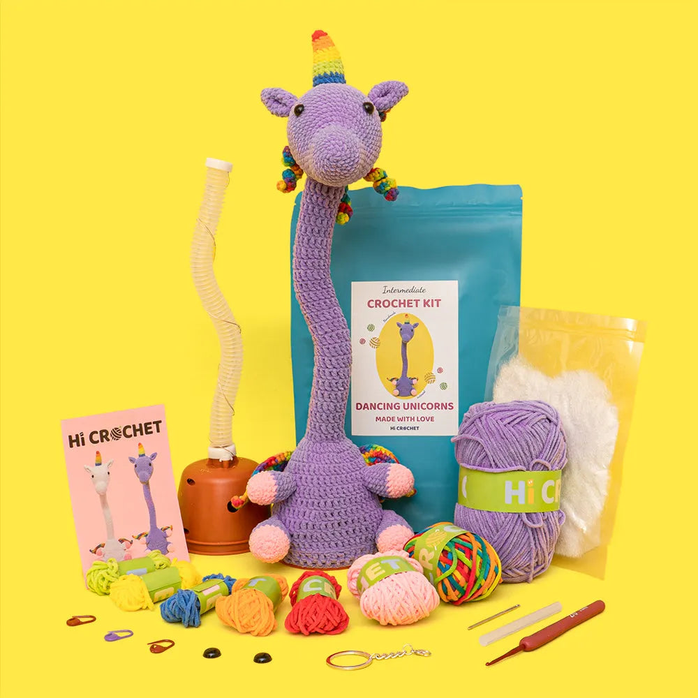 Thus, she crafts a Unicorn Crochet Kit, featuring both white and purple hues, allowing everyone to effortlessly crochet unicorns that can sing and dance. Now, this magical crochet kit is set to lead you on a journey filled with fairy-tale magic, where you can create your own miracles! 🎵🦄🌈